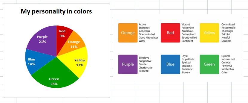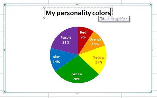 Finalmente, cambia el título del gráfico. Selecciónalo y escribe "My personality colors"