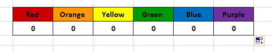 - Para crear la gráfica hay que seleccionar el rango de datos que se desea representar. En este caso solamente nos interesa representar los totales por color y para eso nos es muy útil la pequeña tabla de resultados. Selecciona esa tabla y crea la gráfica con el procedimiento que se indicó anteriormente.